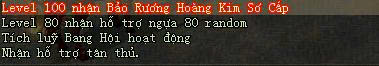 *** Nhân Vật đạt cấp độ 100 có thể đến Hỗ Trợ Tân Thủ ở các thôn trang để nhận